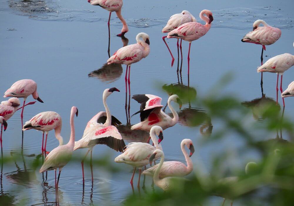 The forested areas are home to black-and-white colobus monkeys, whose long white tails are easy to spot as they leap between trees. Birdlife is exceptional, particularly around the Momella Lakes, where flamingos, waterbirds, and forest species attract bird enthusiasts and casual observers alike.