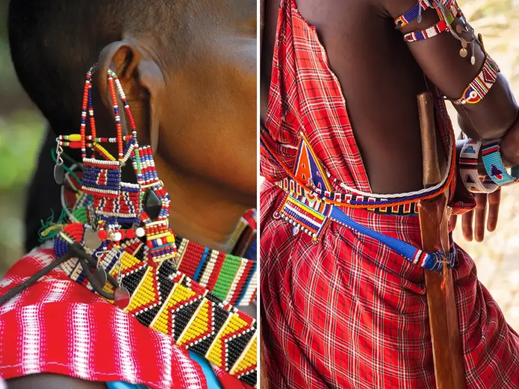 Each piece of jewelry tells a story. Colors such as red, blue, white, and green reflect concepts tied to land, sky, purity, and life. Far from decorative alone, Maasai adornment is a visual language passed down through generations.